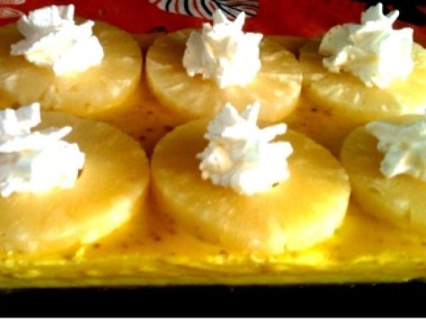 Paso 5: Cuando haya pasado un rato, antes de que cuaje colocamos las rodajas de piña por encima