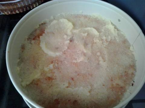 - Poner la segunda capa de bizcocho y repetir el proceso.Cuando hayamos puesto otra vez el relleno,cubriremos con la última capa de bizcocho y lo mojaremos con el jugo de piña.